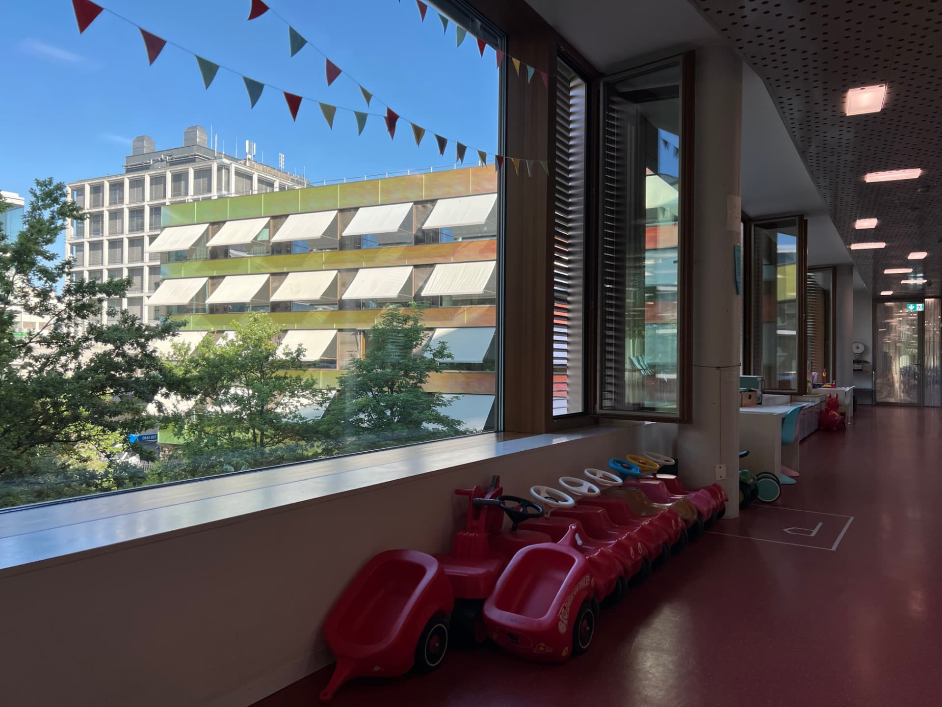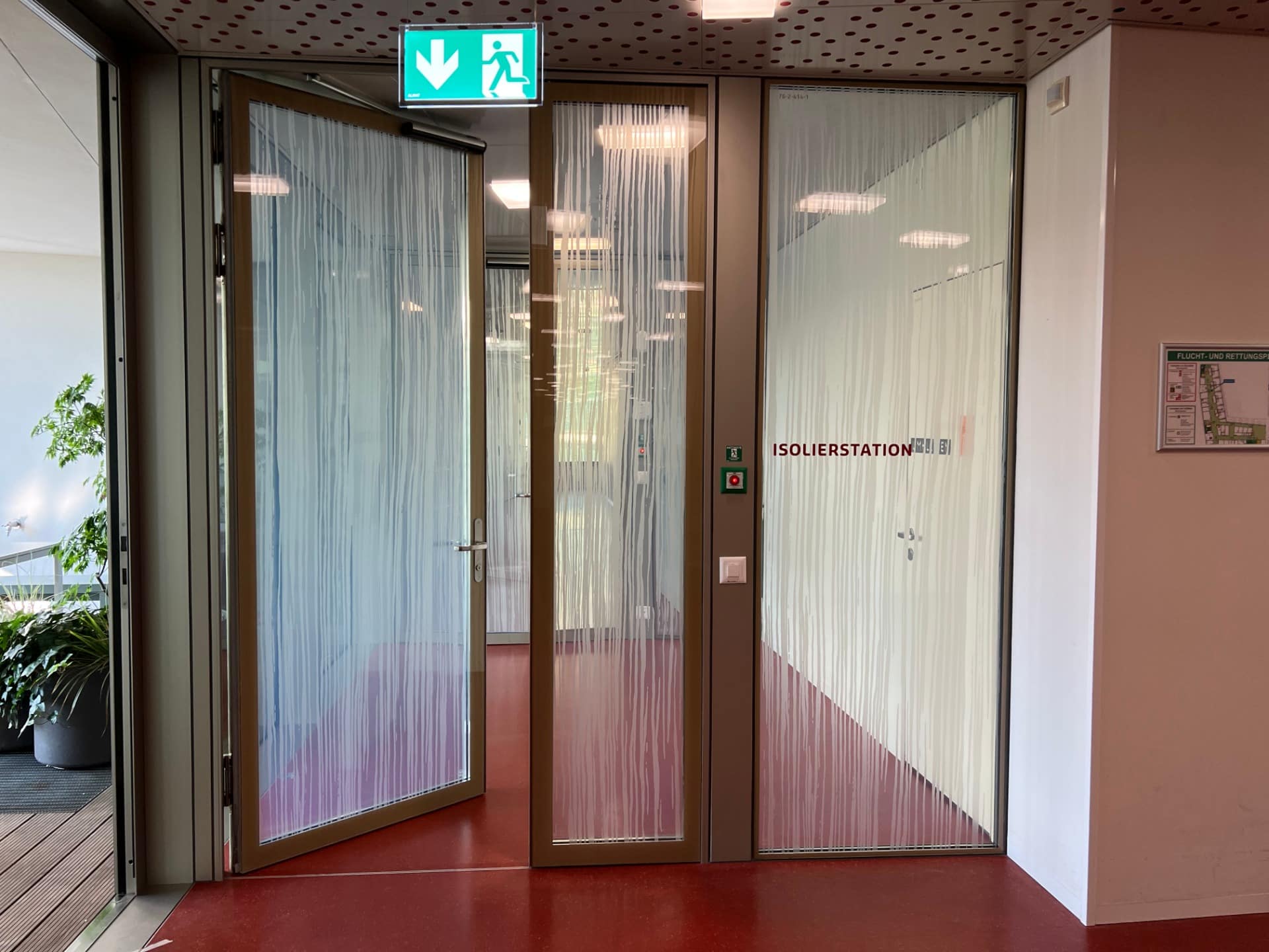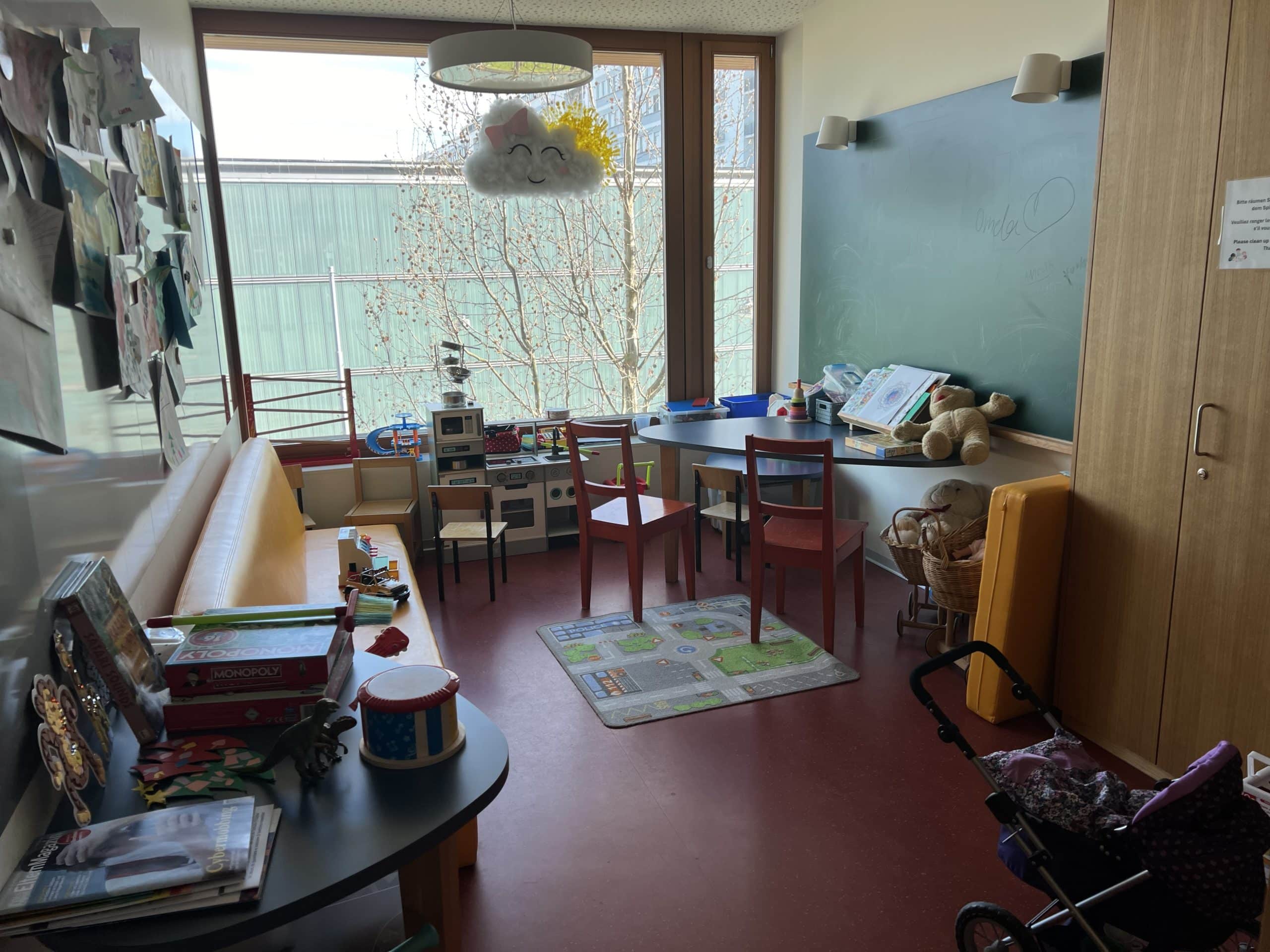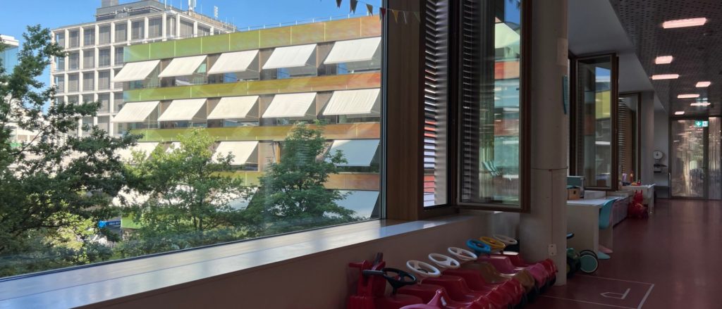 Die Eingangstüre zur Station C wird aus Sicherheitsgründen täglich ab 18 Uhr geschlossen. Für jedes Patientenzimmer steht deshalb für die Eltern ein Tür-Badge zur Verfügung. Dieser kann bei der zuständigen Pflegeperson beim Eintritt verlangt werden und muss vor dem Austritt wieder abgegeben werden.