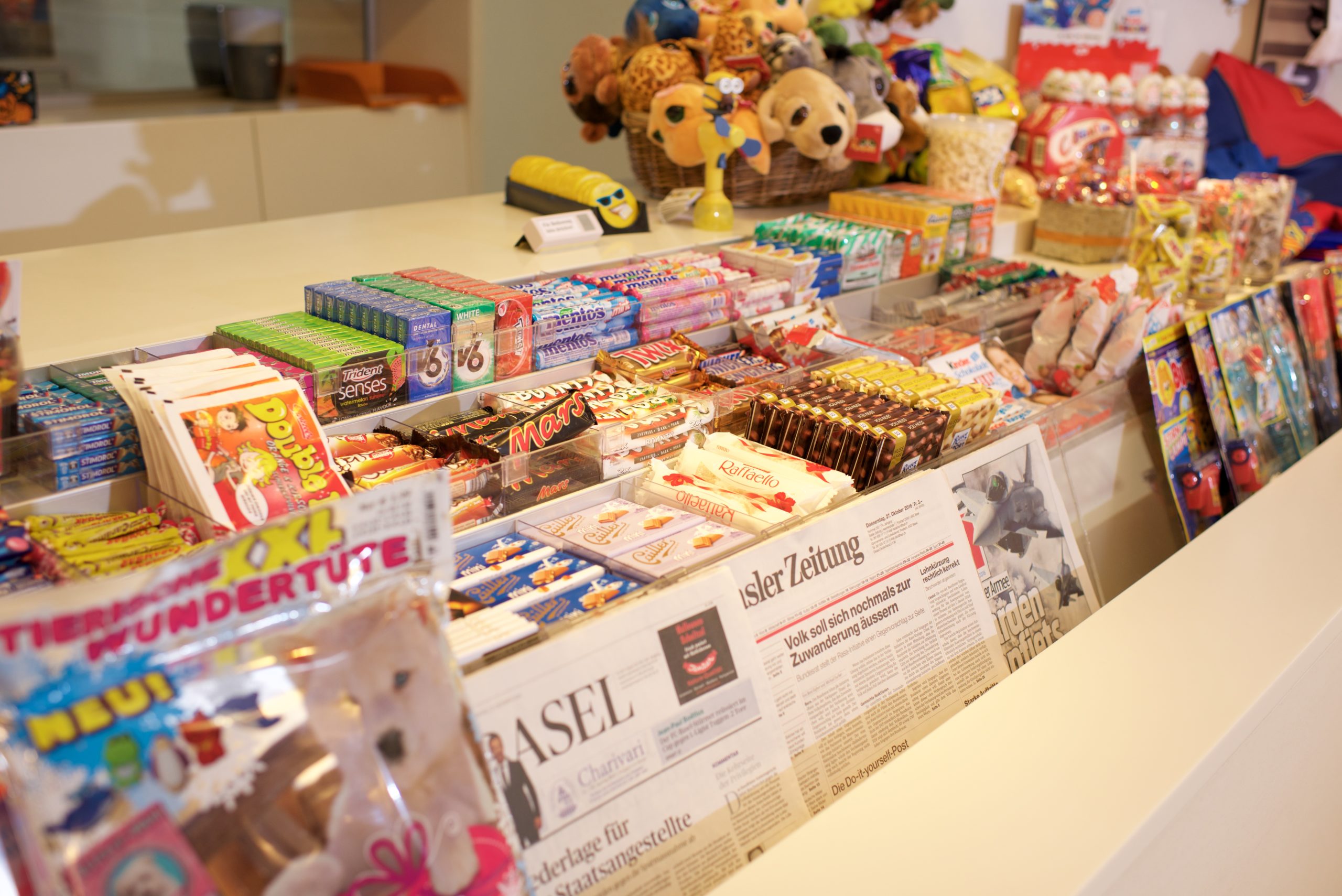 Im Erdgeschoss des UKBB steht Eltern und anderen Besuchenden von 7.00 – 19.00 Uhr ein Kiosk mit Zeitungen, Zeitschriften, Souvenirs und anderen kleinen Artikeln zu Verfügung. Der Kiosk befindet sich hinter der Réception, direkt gegenüber dem Eingang zur Poliklinik.